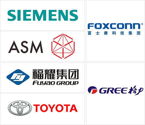 眾多國內(nèi)外知名企業(yè)見證:富士康、格力、美的、赫比、福耀、東風、豐田、中國一汽,住友,松下,格蘭仕、西門子、廣東宏遠等。